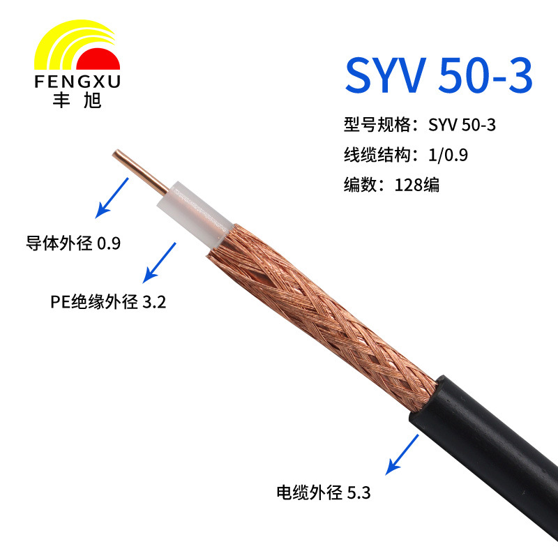 國標(biāo)雙屏蔽同軸射頻電纜SYV50-3-128信號放大器線車載 系統(tǒng)連接線